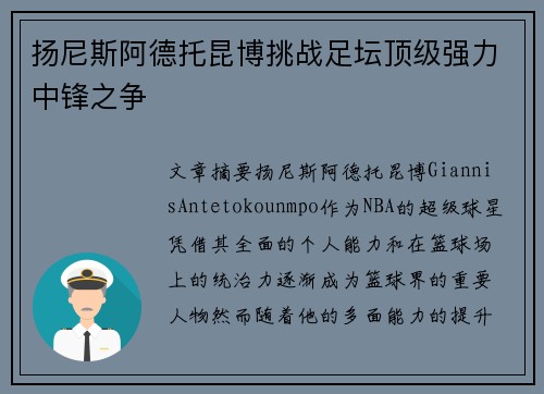 扬尼斯阿德托昆博挑战足坛顶级强力中锋之争