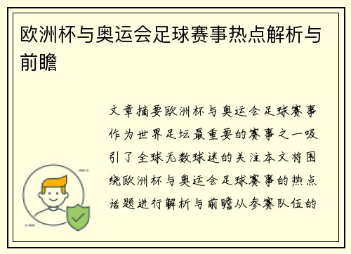 欧洲杯与奥运会足球赛事热点解析与前瞻